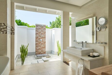 - Nadvodní vily se skluzavkami: Každá jednotlivá nadvodní vila v resortu disponuje nejen vlastním privátním bazénem, ale také zábavnou skluzavkou vedoucí z terasy přímo do oceánu.
