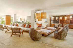 Vybavení pokojů: terasa nebo balkon, klimatizace, fén, telefon, minibar, TV, sejf, set na přípravu čaje a kávy, wifi
