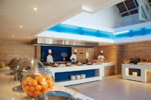 Hotel nabízí celkem 3 restaurace, 3 bary a night club: hlavní bufetová restaurace Indigo, italská restaurace Dolce Vita a La Plage restaurace - kde jinde než na pláži. Je možné připlatit all inclusive balíček Sun Inclusive, který zahrnuje: