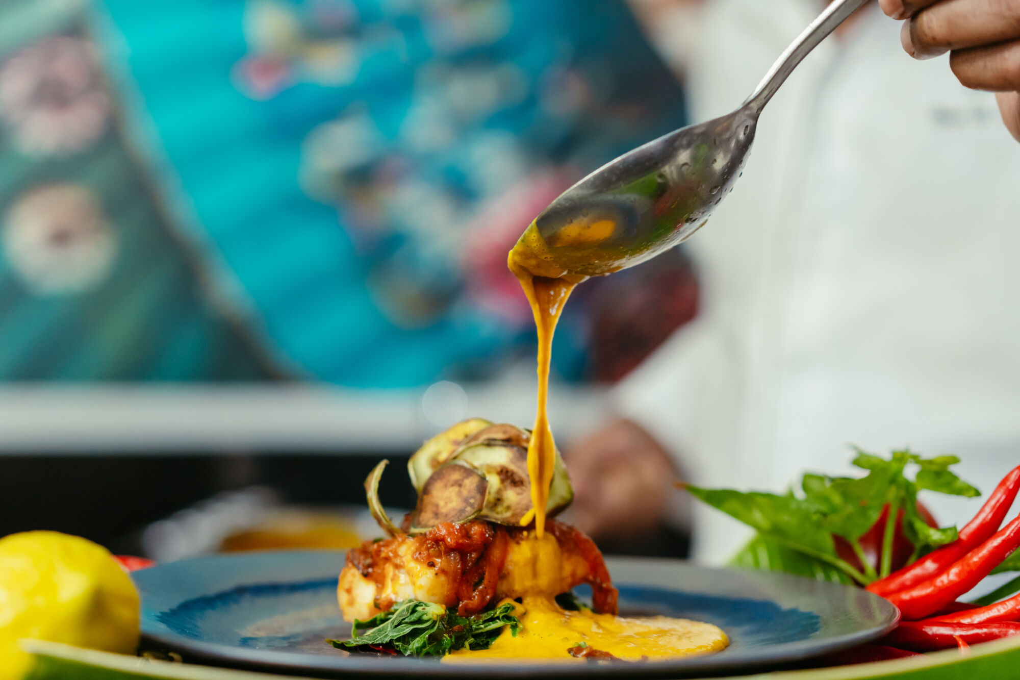 V hotelu naleznete 5 výborných restaurací a 3 bary: hlavní restaurace La Marché se snídaněmi, obědy a tématickými večery, japonská A la Carte restaurace Hasu, italská restaurace Sapori, asijská restaurace Chopsticks a restaurace Tides na pláži, kde si vychutnáte čerstvé plody moře.