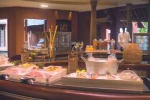 Snídaně formou bufetu, oběd o dvou chodech, odpolední snack v Oasis baru. Minibar doplňován jednou denně (nealkoholické nápoje a lokální pivo). Neomezená konzumace nealkoholických a vybraných alkoholických nápojů.