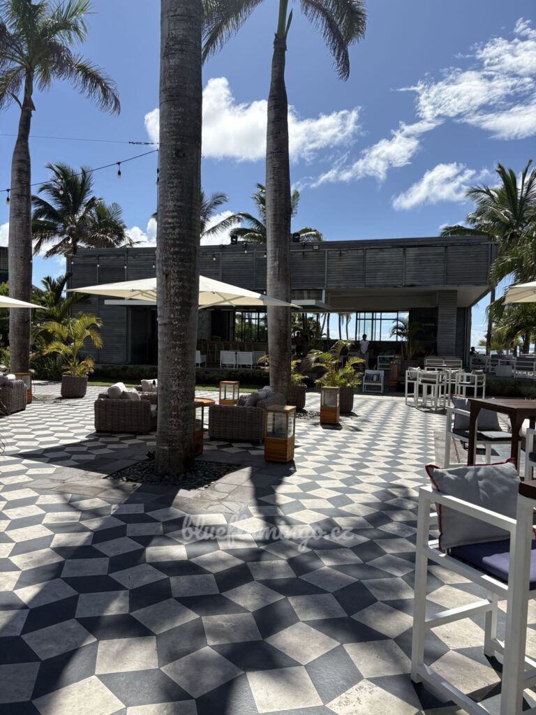 Osobně jsem ho vyzkoušela a na základě mého nadšení už zde strávila dovolenou skoro celá naše rodina. Pokud hledáte moderní vibe, nechcete dělat kompromisy v jídle ani v prostoru pro rodinu, jste tady správně. Hned při příjezdu vás praští do očí ten prostor! Hotel je koncipován kolem centrálního náměstí (Piazza), je plný světla a čistých linií. Žádná tmavá zákoutí. Všude cítíte „fresh“ atmosféru. Je to místo, kde to žije, kde hraje hudba a kde se cítíte spíše jako v lifestylovém resortu než v tradičním plážovém hotelu. Pro mě osobně to byla úžasná změna.
