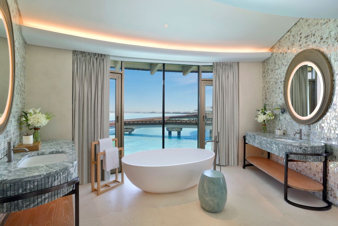 Vybavení všech vil: Soukromý infinity bazén, venkovní terasa, St. Regis Butler Service, luxusní koupelna, vinotéka, kávovar a nejmodernější technologie pro ovládání pokoje.